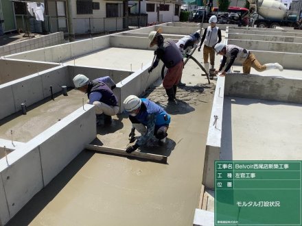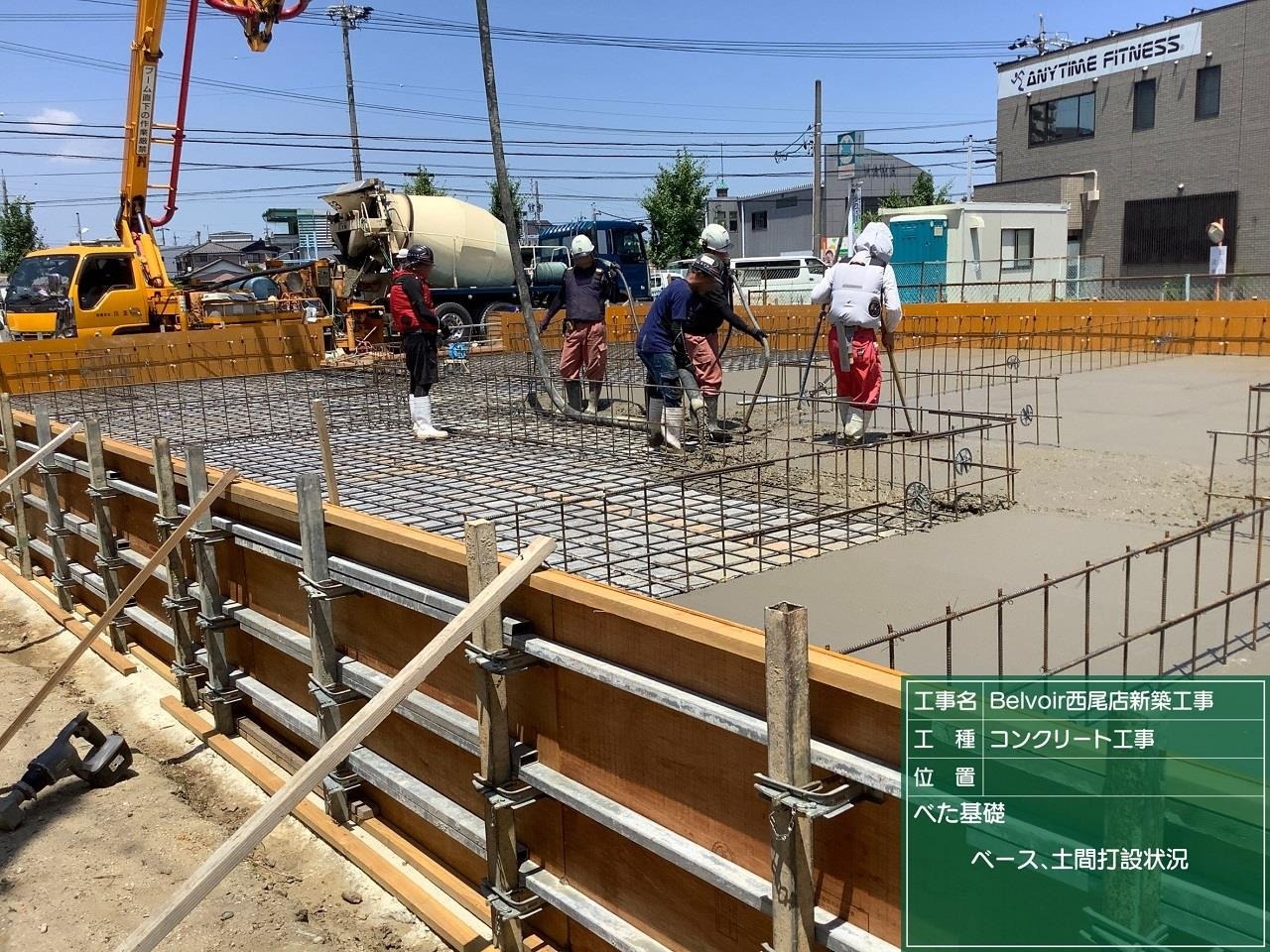 建築部門 民間建造物 2022.11.30公開 Belvoir山下店新築工事 完成③ 工事概要 発注者 株式会社A様 工事名 Belvoir山下店新築工事 工事場所 愛知県西尾市 工事期間 令和4年7月〜令和4年10月 着手前 ベースコンクリート打設 モルタル打設 ルーフィング張 ルーフィング張 完了 建方状況 立上りコンクリート打設 下地設置 施工状況① 施工状況② 施工状況③ 打合せ中 完成① 完成② 完成③ 駐車場舗装① 駐車場舗装②