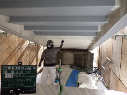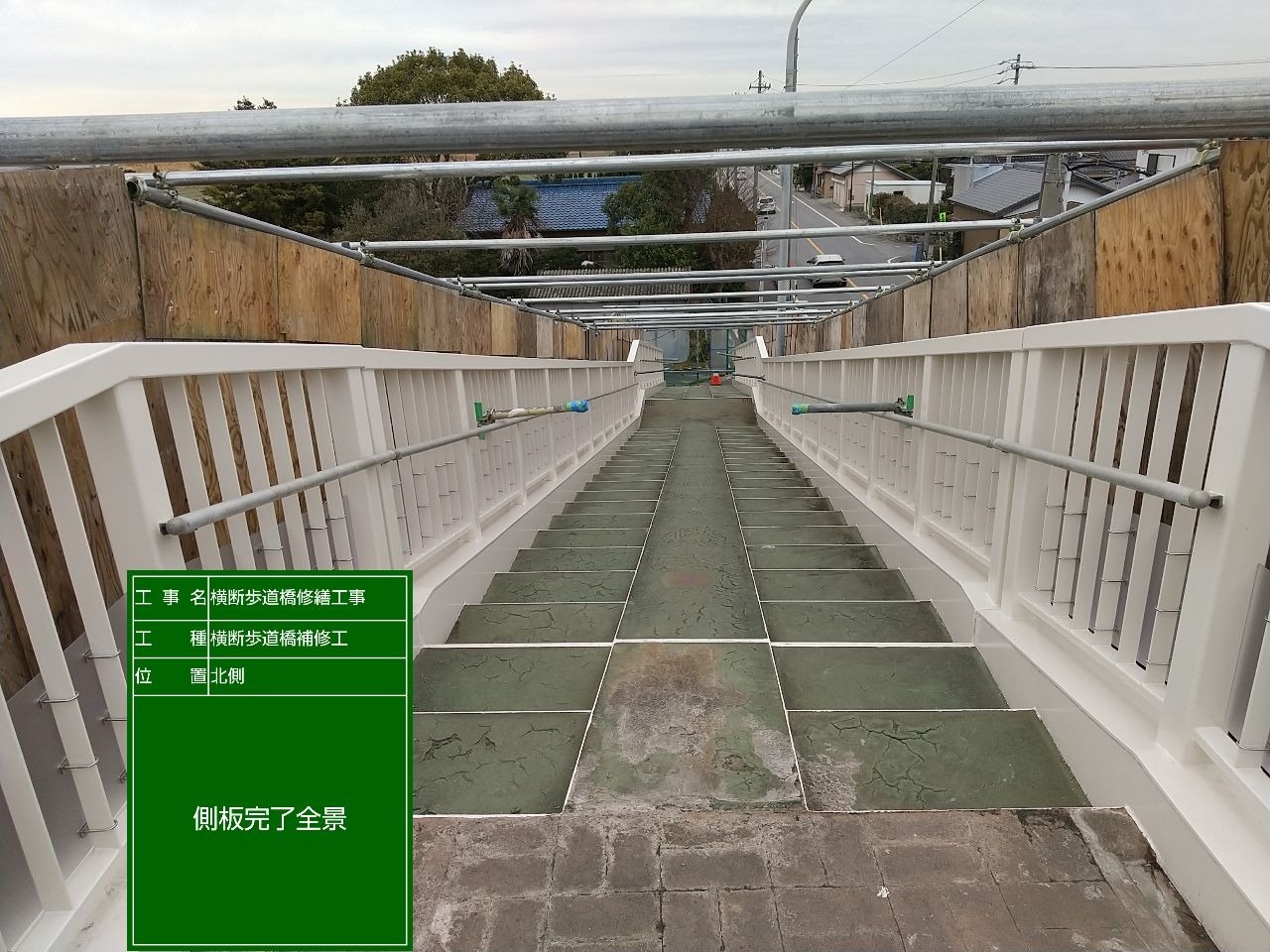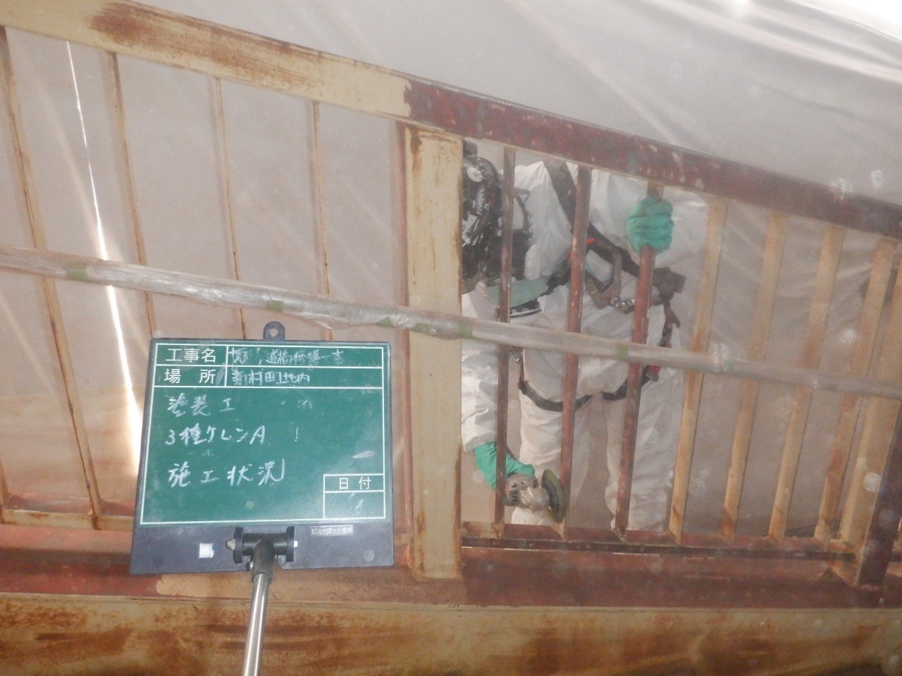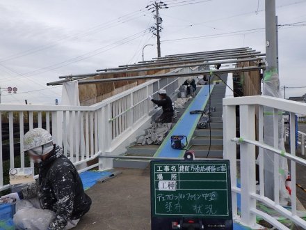 土木部門 2024.03.19公開 横断歩道橋修繕工事 側板設置 工事概要 発注者 西尾市 工事名 横断歩道橋修繕工事 工事場所 西尾市新村町外1町地内 新村歩道橋 工事期間 令和5年6月〜令和6年2月 工事内容 道路付属施設工、維持修繕工、その他土木一式工 着手前 足場設置① 足場設置② 吊り足場設置 落下物防護板 設置 FRPシート 張り付け FRPシート 紫外線照射 FRPシート 完了 ケレン状況 ジンクリッチ塗布 夜間照明① 夜間照明② 中塗り塗装① 中塗り塗装② 塗装完了 側板設置 側板完了全景 前のエントリー 次のエントリー