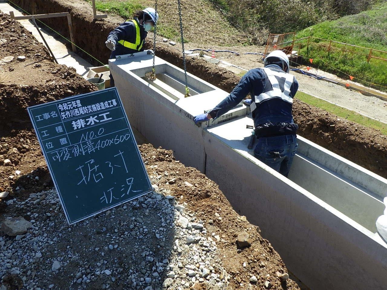 土木部門 河川工事 2020.09.02公開 令和元年度 矢作川西尾防災施設造成工事 工事完了写真 工事概要 発注者 国土交通省 中部地方整備局 豊橋河川事務所 工事名 令和元年度 矢作川西尾防災施設造成工事 工事場所 西尾市志貴野町地先 工事期間 令和元年8月〜令和2年8月 工事内容 土地造成工、築堤工、その他土木一式工 防災ステーションを作る工事です。 据付状況 据付完了 フェンス基礎設置 下層路盤 転圧 下層路盤 敷均状況 コンクリート打設状況 光ケーブル埋設 6月末工事全景 7月末工事全景 路盤不陸整正 路盤転圧状況 舗設状況 堤防道路完了① 堤防道路完了② 工事完了写真 前のエントリー 次のエントリー