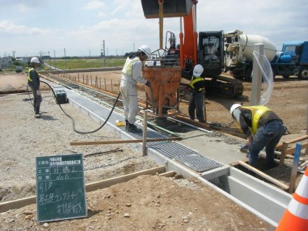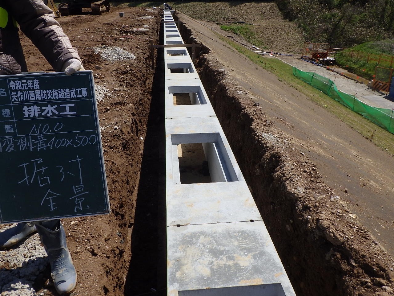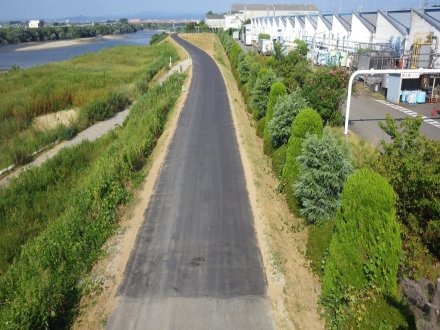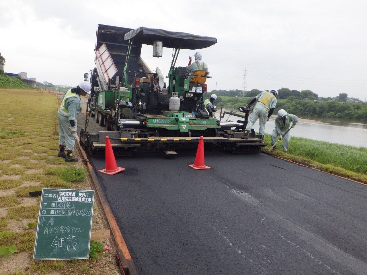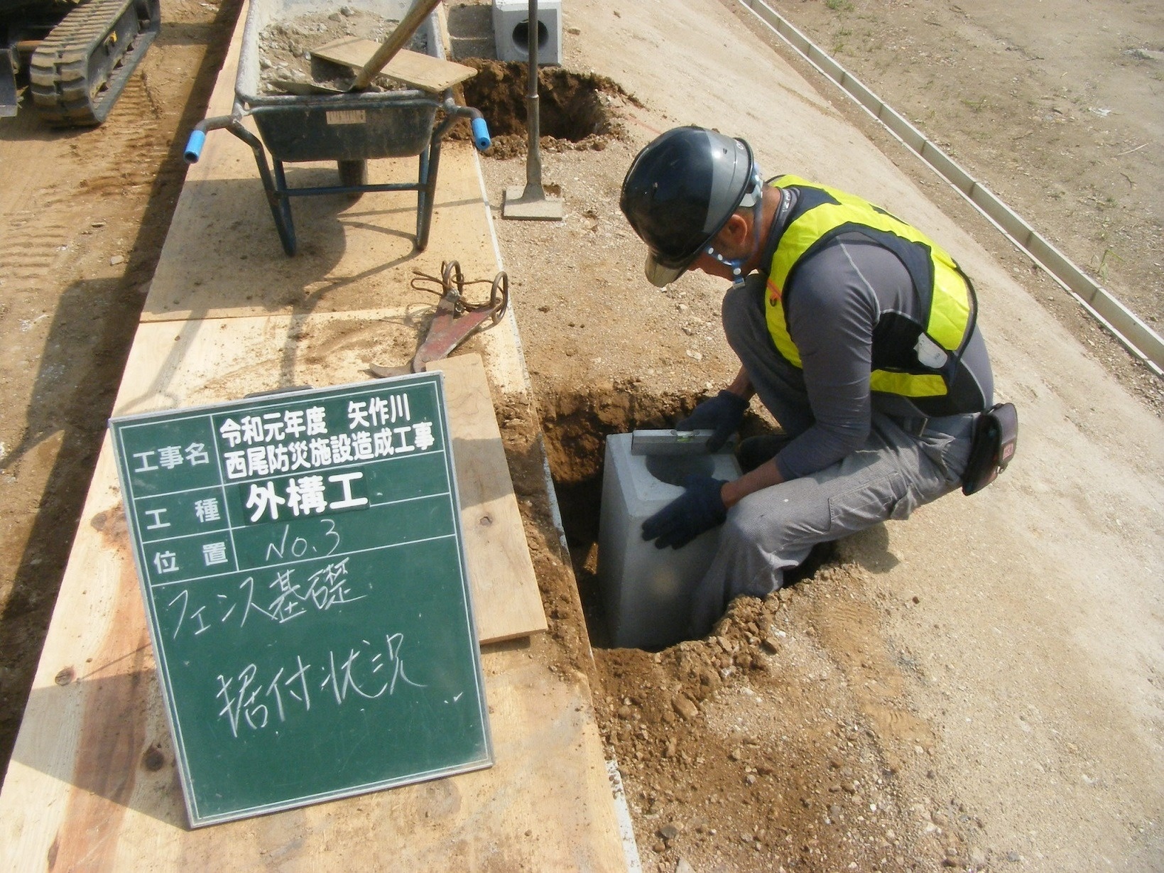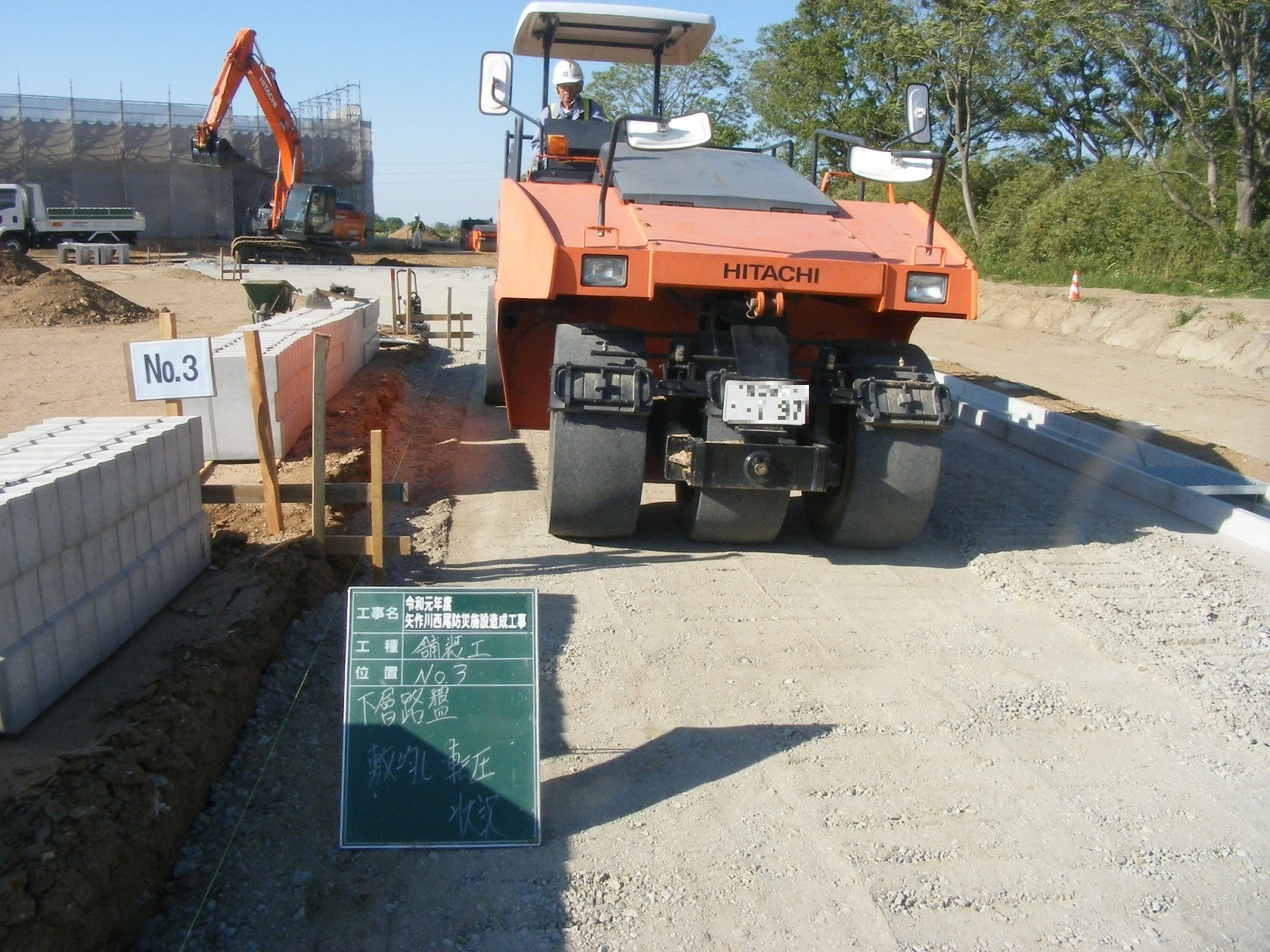 土木部門 河川工事 2020.09.02公開 令和元年度 矢作川西尾防災施設造成工事 工事完了写真 工事概要 発注者 国土交通省 中部地方整備局 豊橋河川事務所 工事名 令和元年度 矢作川西尾防災施設造成工事 工事場所 西尾市志貴野町地先 工事期間 令和元年8月〜令和2年8月 工事内容 土地造成工、築堤工、その他土木一式工 防災ステーションを作る工事です。 据付状況 据付完了 フェンス基礎設置 下層路盤 転圧 下層路盤 敷均状況 コンクリート打設状況 光ケーブル埋設 6月末工事全景 7月末工事全景 路盤不陸整正 路盤転圧状況 舗設状況 堤防道路完了① 堤防道路完了② 工事完了写真