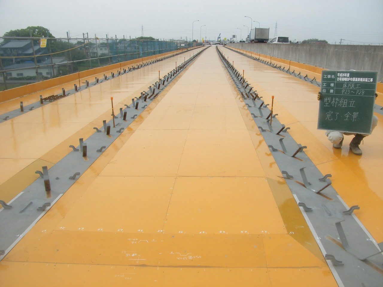 土木部門 橋梁工事 2019.11.08公開 平成26年度 23号岡崎BP中原高架橋床版工事 工事概要 発注者 国土交通省 中部地方整備局 名四国道事務所 工事名 平成26年度 23号岡崎BP中原高架橋床版工事 工事場所 愛知県西尾市 工事期間 平成27年2月〜平成27年10月 工事内容 床版工、伸縮装置工、地覆・壁高欄工、橋梁防護工